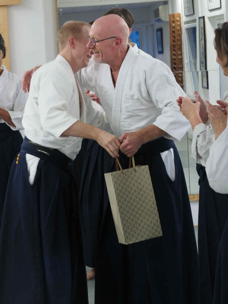 Shihan Bjørn Eirik Olsen, 7. dan fylte 70 år 02. oktober. Tenshinkan feiret ham den 3. oktober med en trening, sakeskåling og gratulasjoner, før vi dro ut for å spise og feire videre! Her er en kort presentasjon for de som er nye i aikido miljøet: